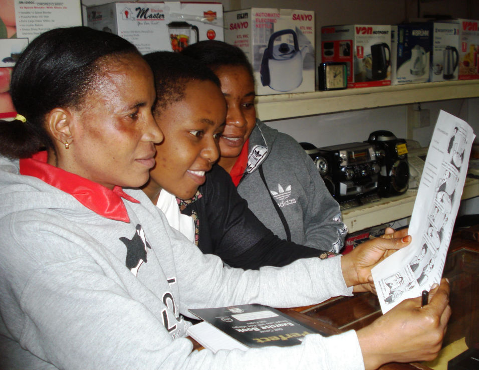 Janeth Ngaga, Silvia Mandela & Rehema David, staff of Topshop Ltd, learning about stroke. Topshop is situated in the busy shopping street of Jamat in Iringa. No more wondering what is going on: if somebody falls ill on the street, Janeth and others are able to quickly recognise the symptoms of stroke. Stroke is often mistakenly associated to old age. 8 % of all strokes occur in people under 44 years of age.